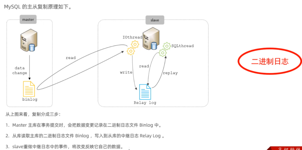 主从复制是指将主数据库的DDL和DML操作通过二进制日志传到从库服务器中,然后在从库上对这些日志重新执行(也叫重做),从而使得从库和主库的数据保持同步。