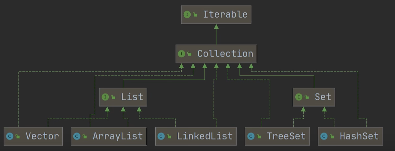 • Collection接口没有直接的实现子类,是通过它的子接口List和Set来实现的;